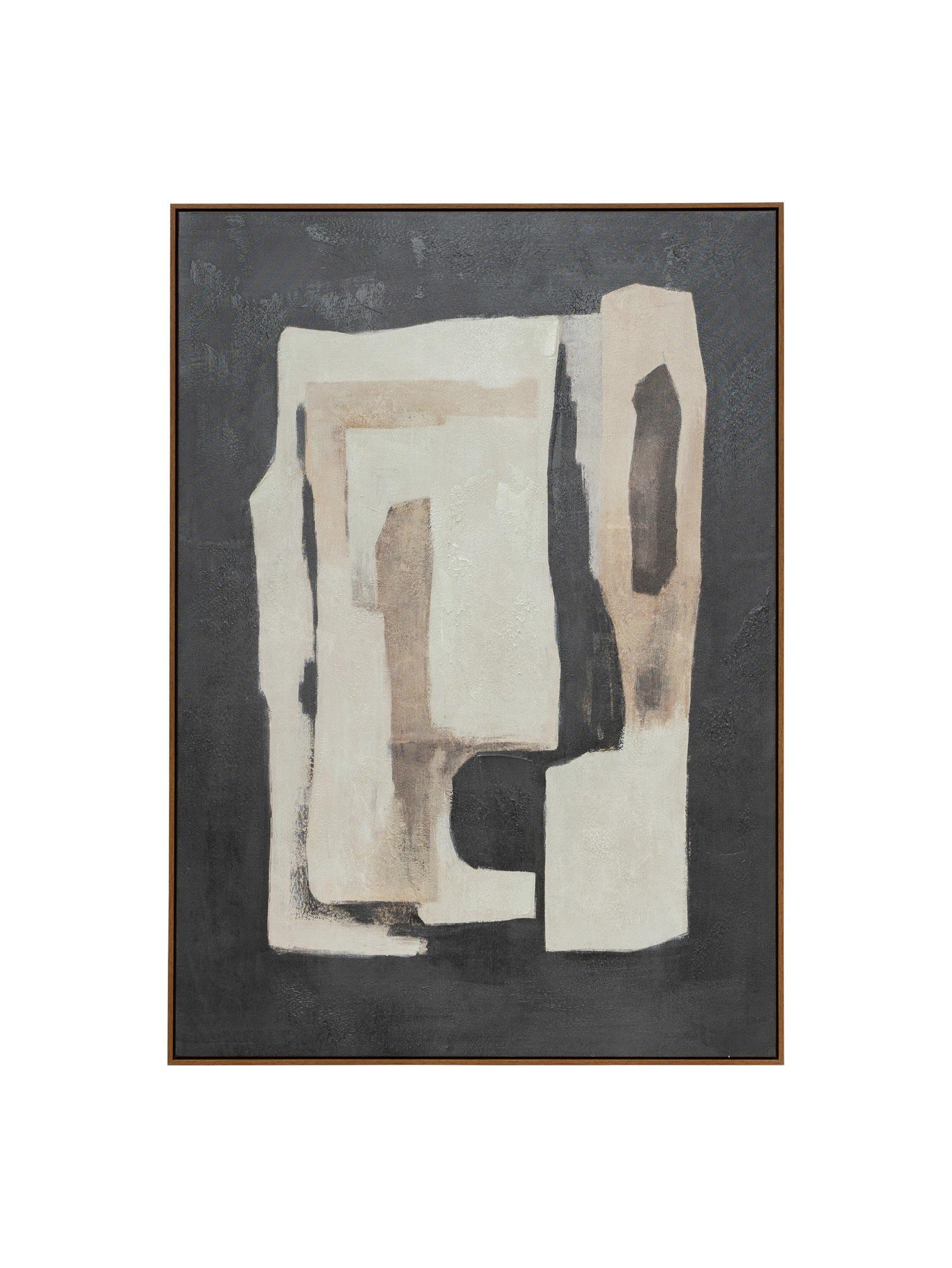 This striking piece features an abstract design with intricate hand-painted brushstrokes and layered textures. The interplay of warm earthy tones and fluid shapes creates a sense of depth, making it a captivating focal point.