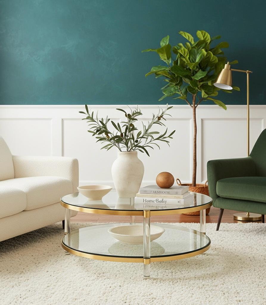 Weightless elegance and seamless flow. The combination of clear glass tiers and discreet acrylic legs with gold accents creates an effect of near invisibility. It’s the perfect choice for showcasing your curated objects while maximizing light and space.