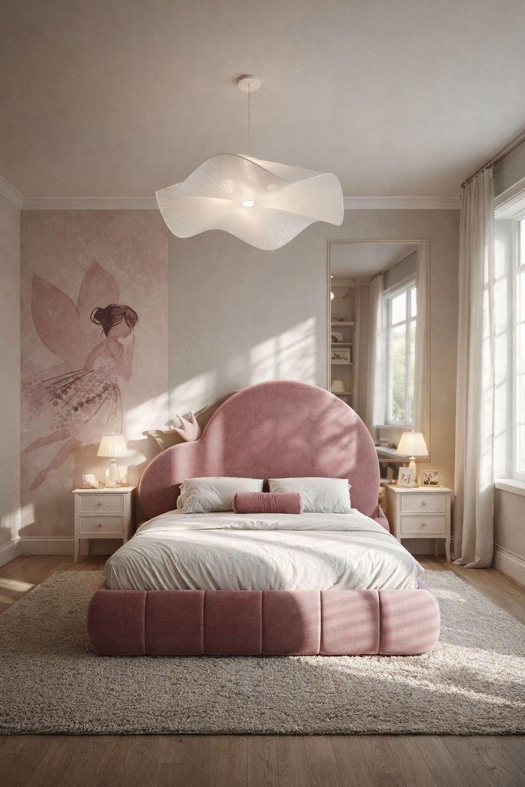 Unconventional and full of personality, this asymmetrical piece brings an artistic edge to the bedroom. Its rich, rosy hue and velvet texture make it the bold centrepiece of a creative, feminine sanctuary.