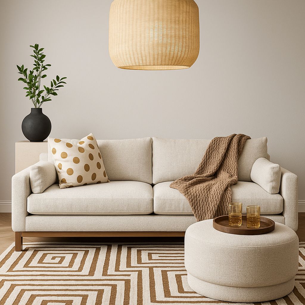 Airy lightness grounded by warm wood. Upholstered in a crisp, natural linen fabric, this sofa has gently sloped arms and loose back cushions. The exposed wood base adds a refined, organic touch, perfect for bright, open spaces.
