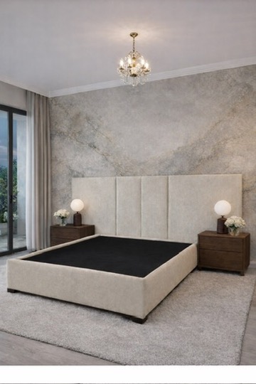 Designed for the ultimate wind-down, this bed frame brings a sense of architectural calm to the bedroom. The extra-wide, vertically panelled headboard creates a grand focal point, while the low-profile upholstered base keeps the energy grounded and peaceful. Wrapped in a tactile, sand-toned fabric, it’s a sanctuary built for soft textures and deep, restorative sleep.