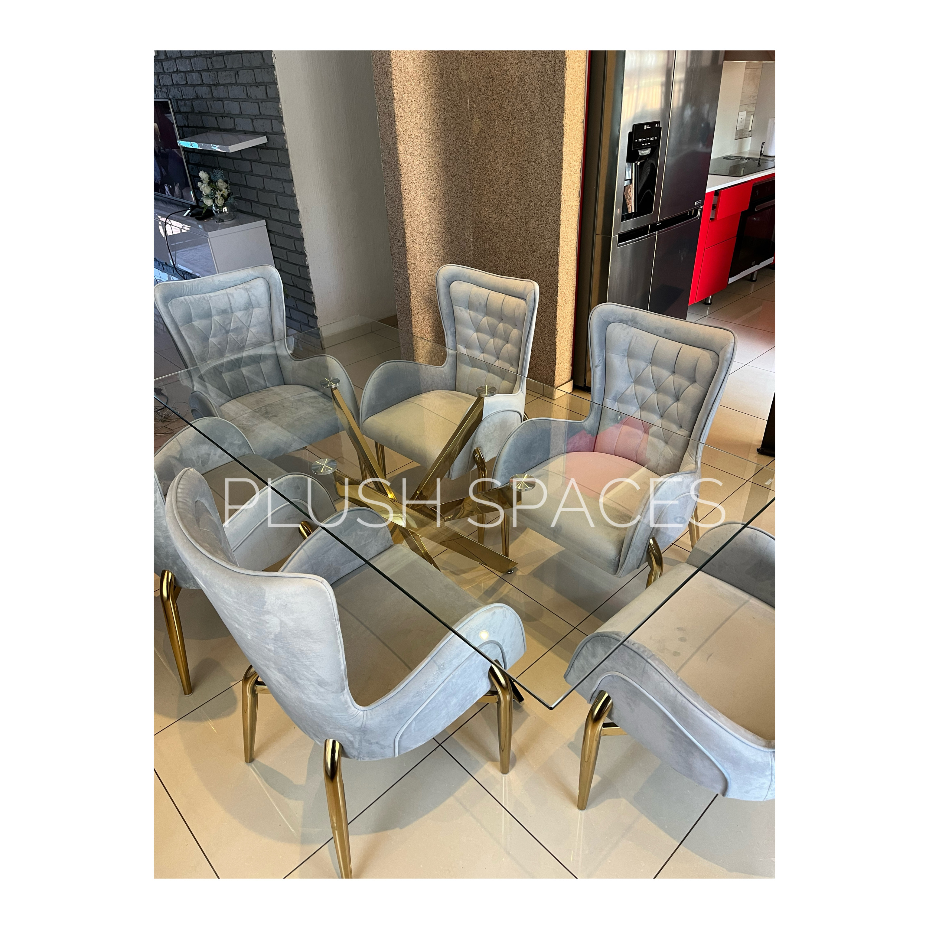 6x velvet chairs . Chairs available in grey and beige